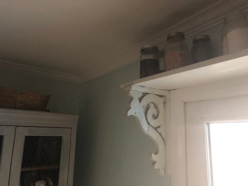 The Dining room for us is a focal point as it’s the first thing you see when you walk in the door. I did NOT want this place to boast high function and all the clutter that comes with it. So I’ve merely taken a Martha Stuart trick and put custom built shelves above each doorway to house canning jars for pantry goods, which was SO needed as yup….you guessed it, the pantry is yet another thing this tiny house DOESN’T have.