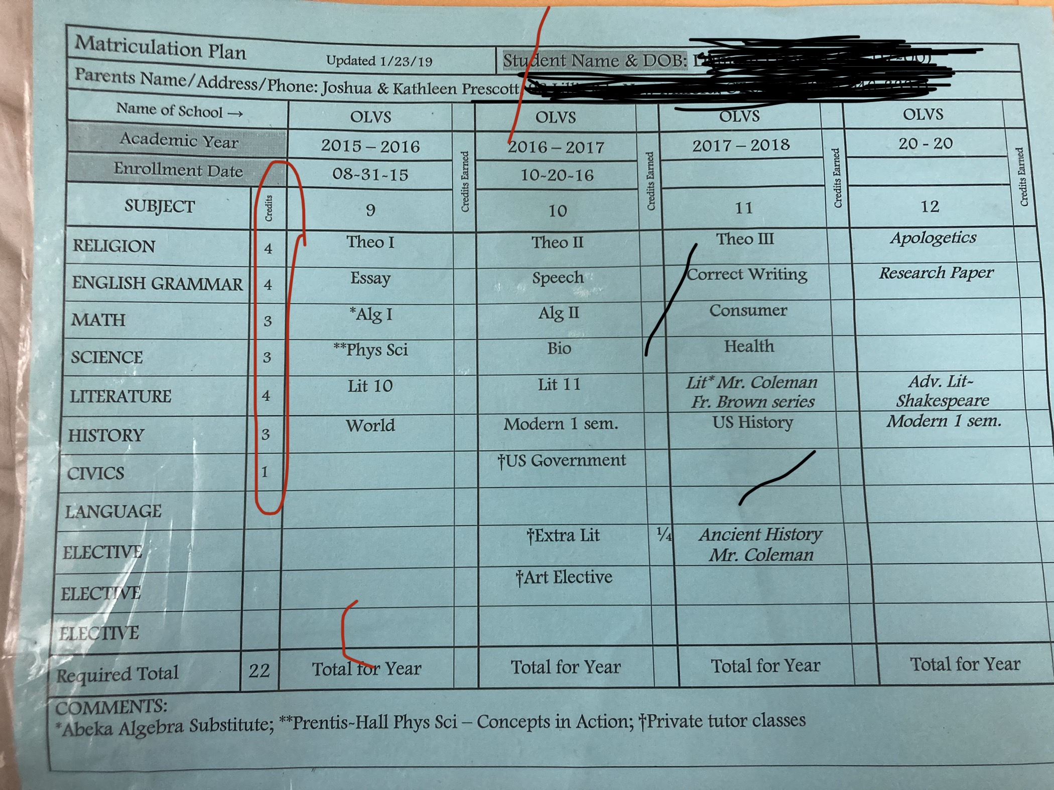 Jennifer S. ”Buy a curriculum. Any provider will lay that out. My kids use Seton/Kolbe, while we outsource History.”