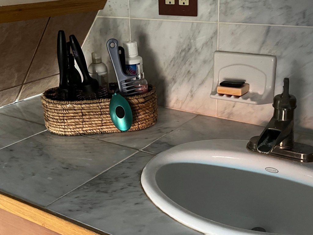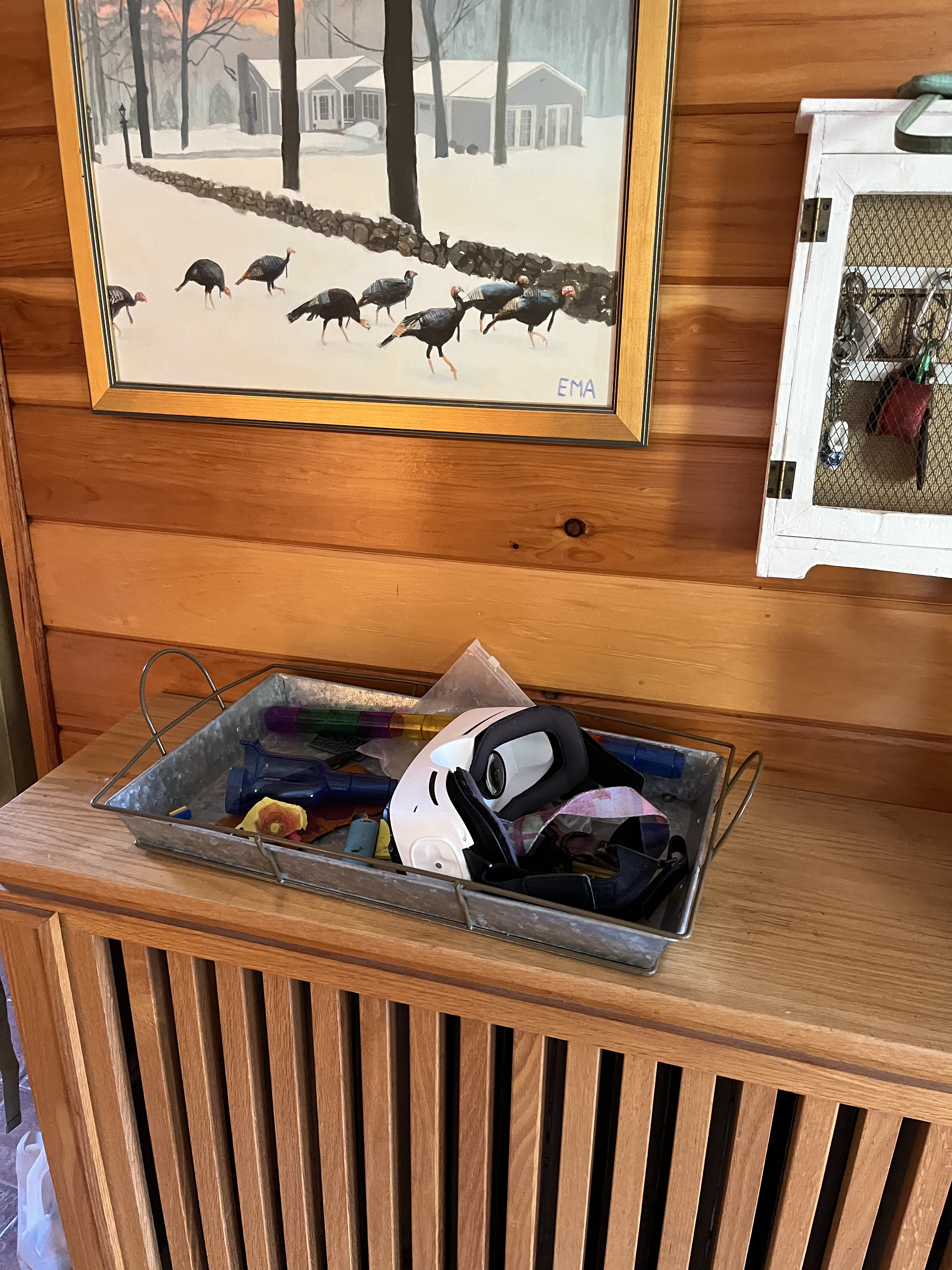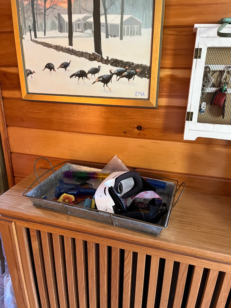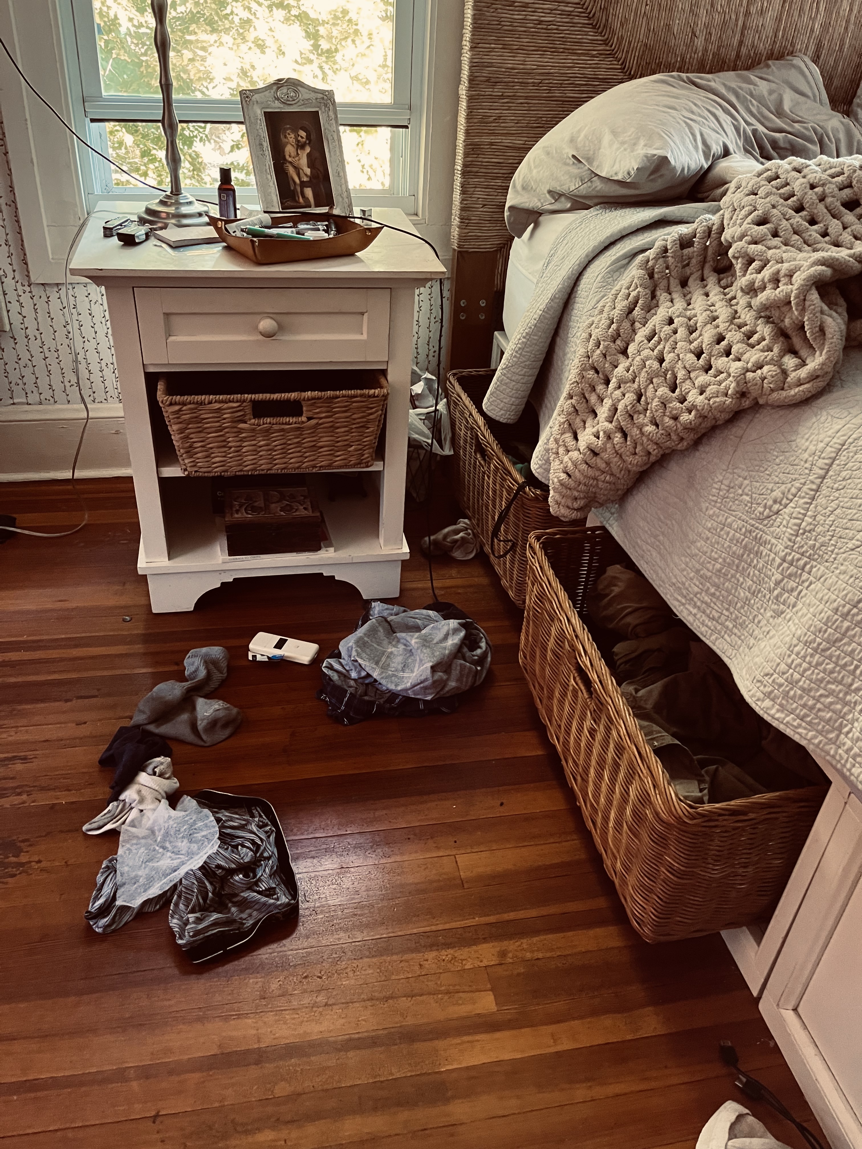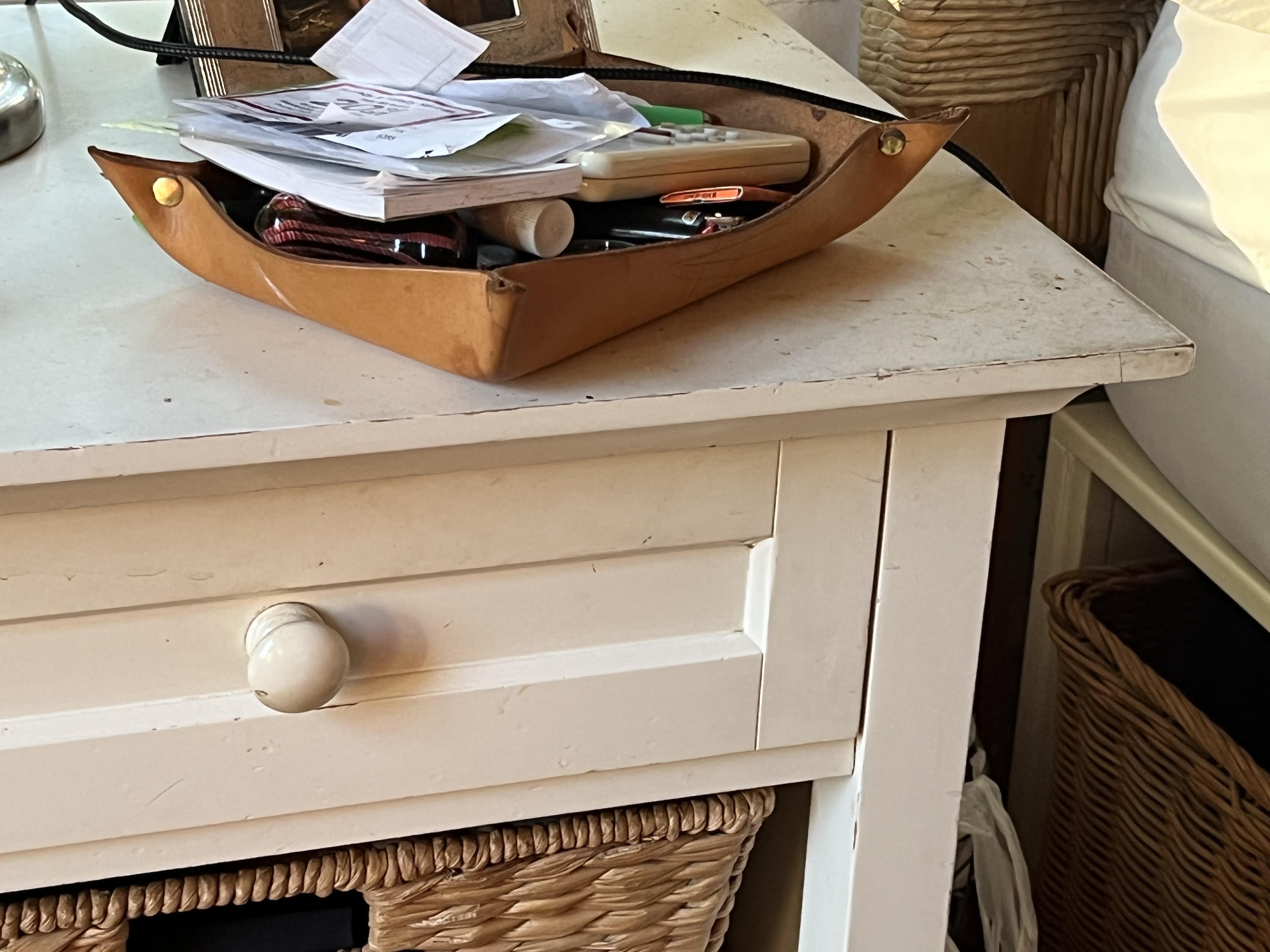 - Leave large open baskets on floors that are typical “drop spots” and trays on surfaces that are. Then just schedule yourself 10-15 minutes every day or 30min-hour every weekend to empty them.