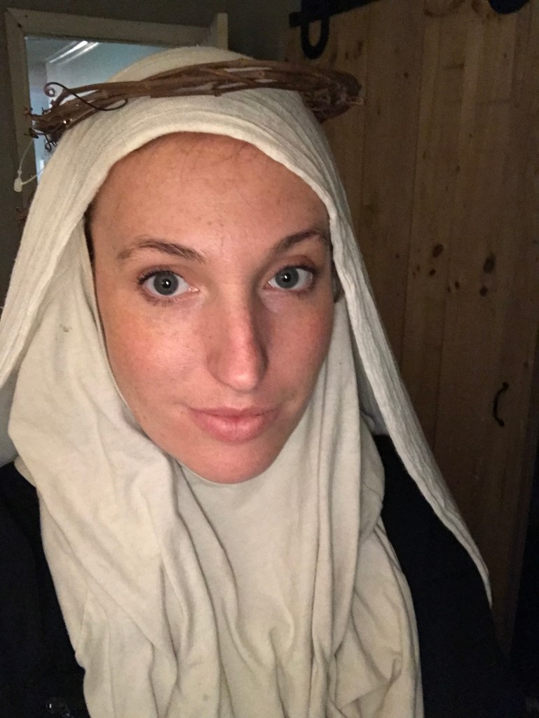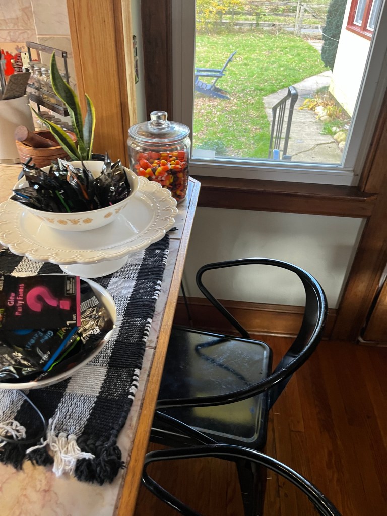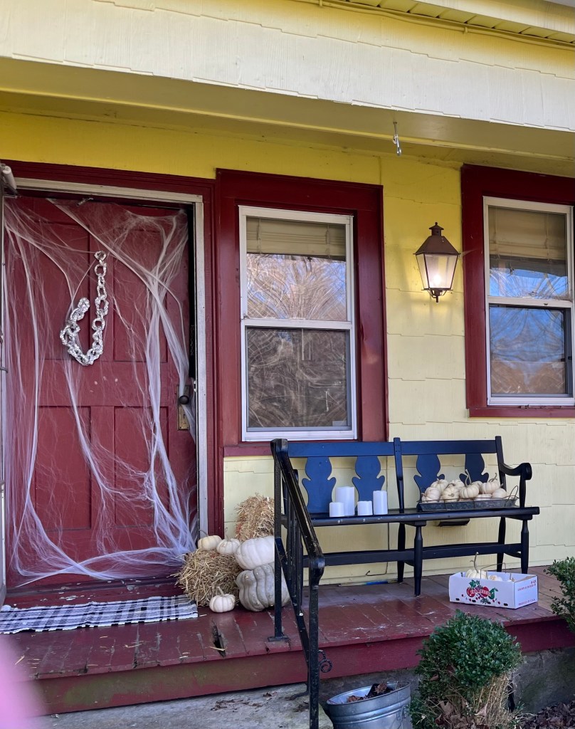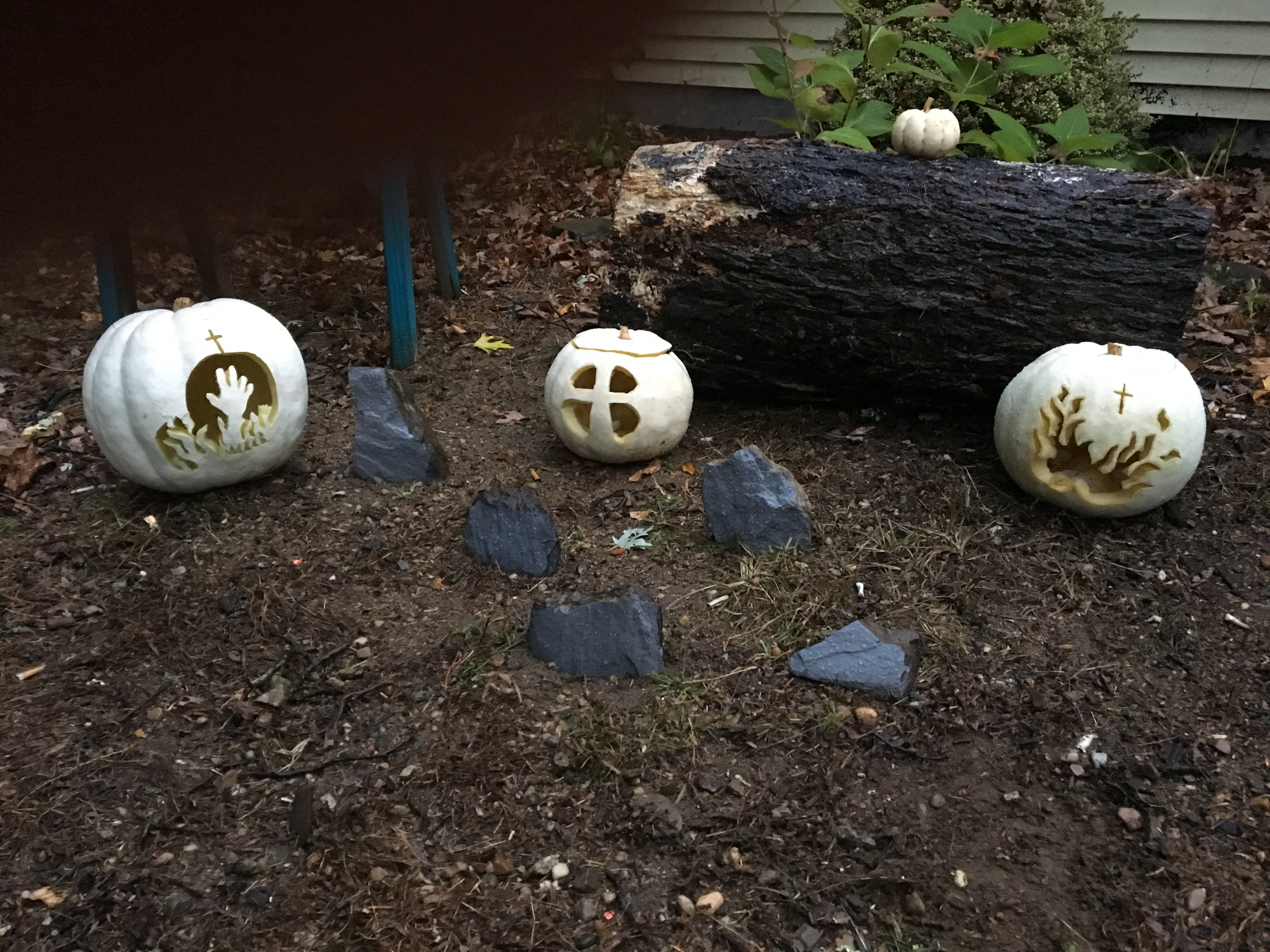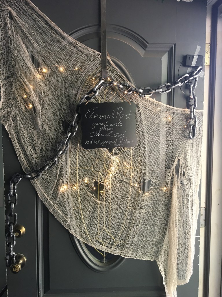 This year in honor of the traditional “A penny for a soul cake” that was passed door to door in exchange for prayers for the dead and likely inspiration for the current trick-or-treat we hand out little white pumpkins to all who stop in. We do actually do this on All Hallows’ Eve though, as that’s when the souls are out on the streets a’stoppin. This year we are inviting trespassers to “glow with grace” and letting the littles hand out glow sticks.
