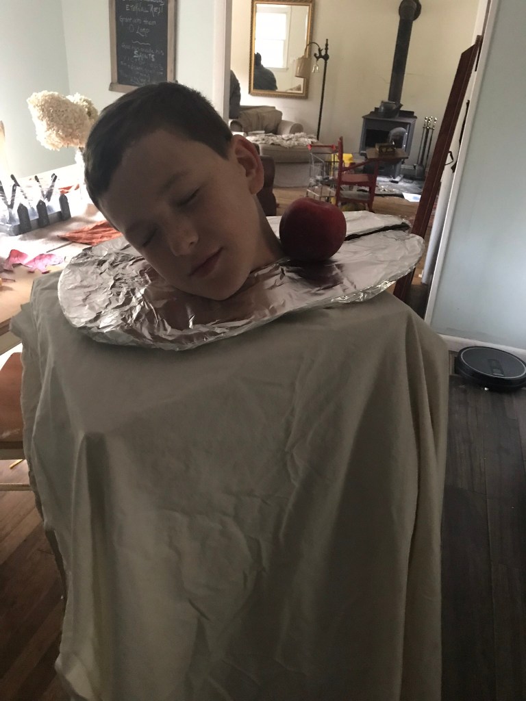 Second in the trio of holy days is the Feast of All Saints. We attend the Holy Sacrifice of the Traditional Latin Mass in ancient Roman Rite early in the morning, have apple cider donuts and egg bite muffins en route gone and to-go cups of hot apple cider. We usually resume school work when we get home but still spend the day in costume. We all make index card biographies of the saints we chose to impersonate and read them off to whomever we see or sometimes just to each other. Some of my kids even like to memorize theirs or act out a short skit in either how they died or how they lived, whichever earned them the title of Sainthood.