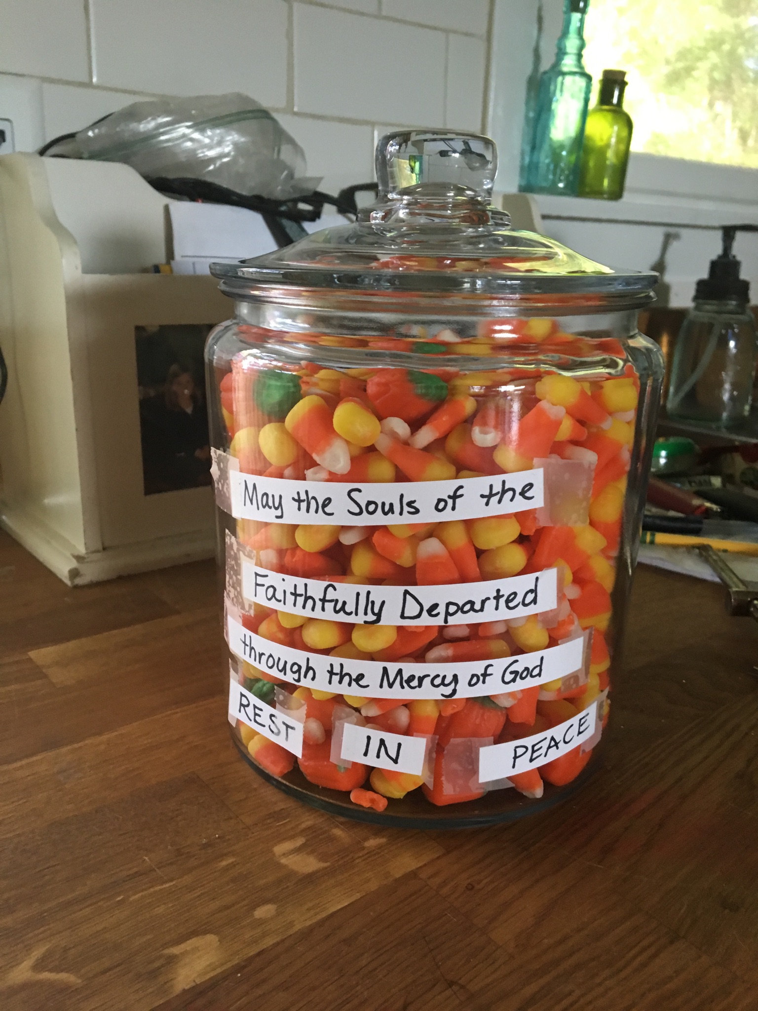 The day stays holy all the day long with constant prayers for the dead and treats each time the kids do and extra special meals like soul cakes and carved pumpkin peppers stuffed with ground beef and rice and swimming a bowl of tomato soup.